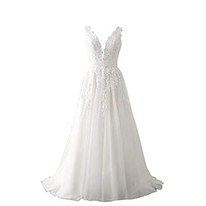 Abaowedding Damen Hochzeitskleid für Braut Spitze Applique Abendkleid V-Ausschnitt Träger Ballkleider