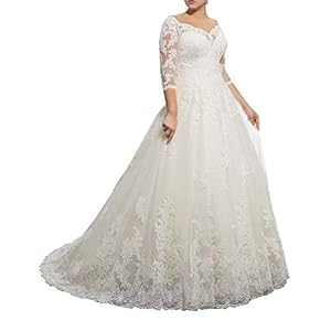 VKStar® V-Ausschnitt 3/4-Arm Brautkleid Hochzeitskleid Große Größen Damen Prinzessin Spitze Tüll A-Linie Lang Brautkleider