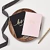 Beautiful gold foil wedding vows book: 24 lined pages inside, made out of 120 gsm paper, thick enough to not bleed ink or show the writing on the next page.