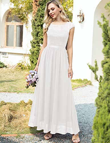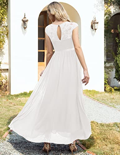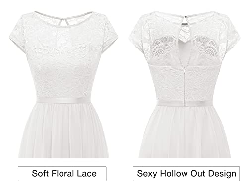 DRESSTELLS Damen Lang Abendkleid Chiffon Brautjungfern-Spitzenkleid Maxikleid für Hochzeit Abschlussball