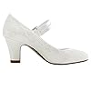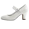 Elegantpark HC1701 Mary Jane Block Absatz Pumps Geschlossene Zehen Lace Satin Brautschuhe