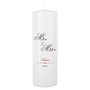 Herz & Heim® Hochzeitskerze – Mr. & Mrs. – mit Aufdruck des Nachnamens und Hochzeitsdatum